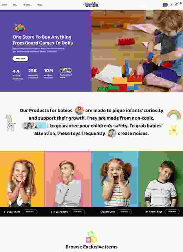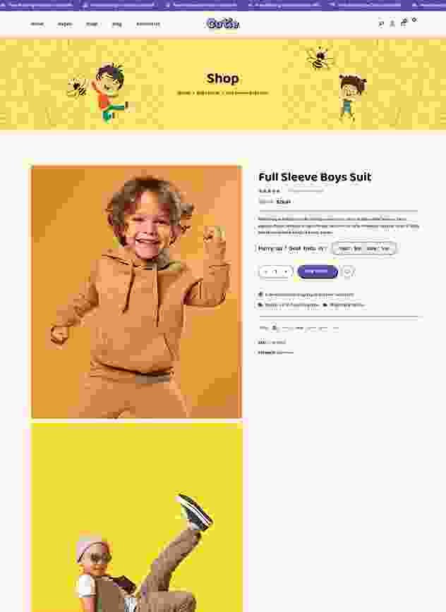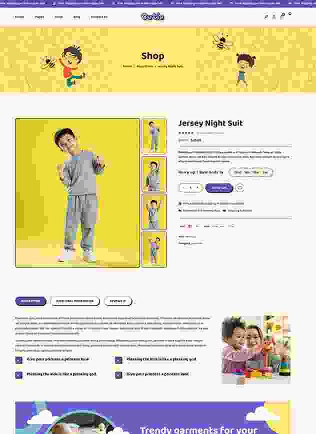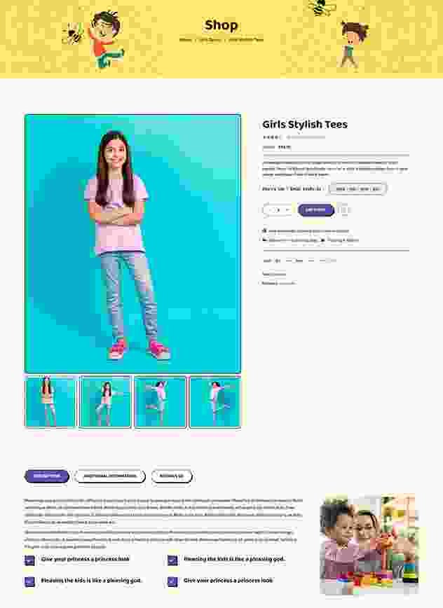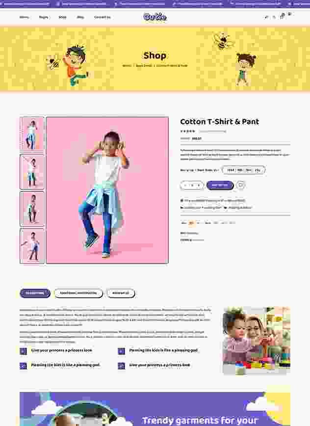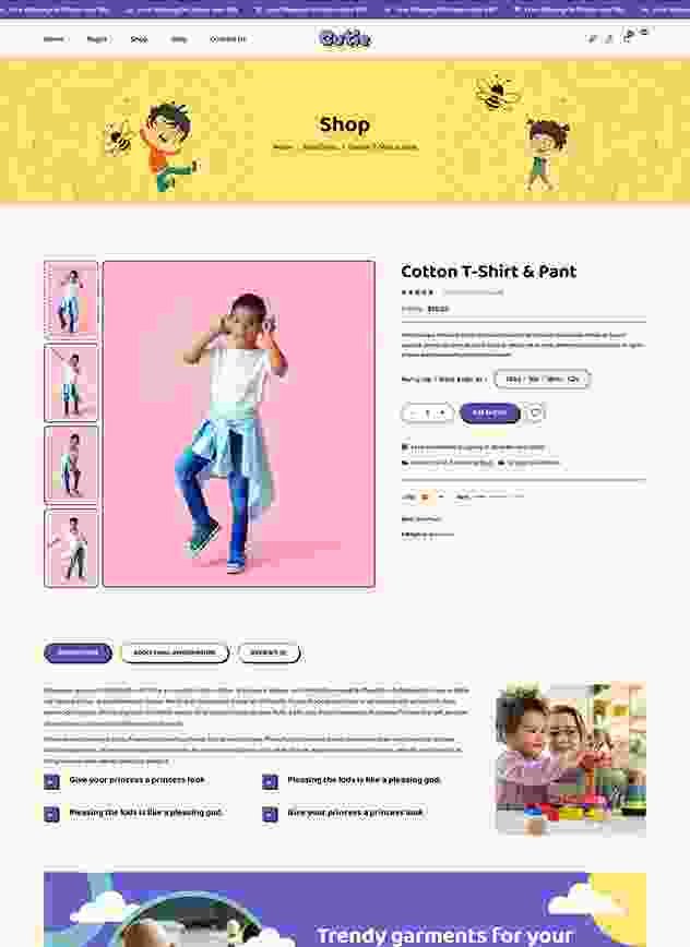 Cutie | Kids Store WordPress Theme is elegant and colorful kid store product for online baby store, baby shopping store, baby boutique, baby fashion store, kids clothing store, and any single product shop.